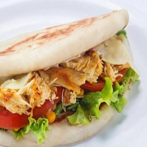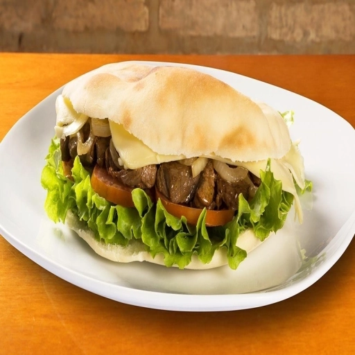 Pão árabe, filé, catupiry, mussarela, tomate e alface