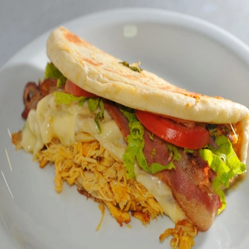 Pão árabe, frango, bacon, calabresa, catupiry, tomate e alface