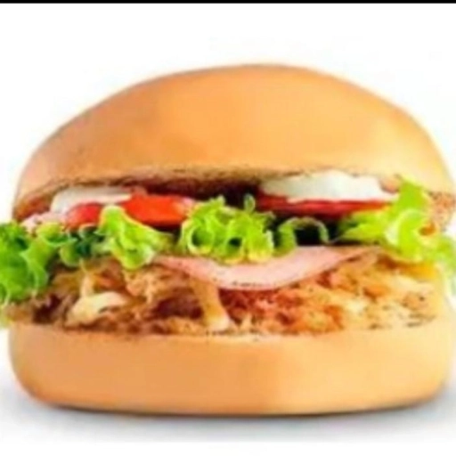 Pão, molho especial, frango, presunto, queijo, tomate, alface